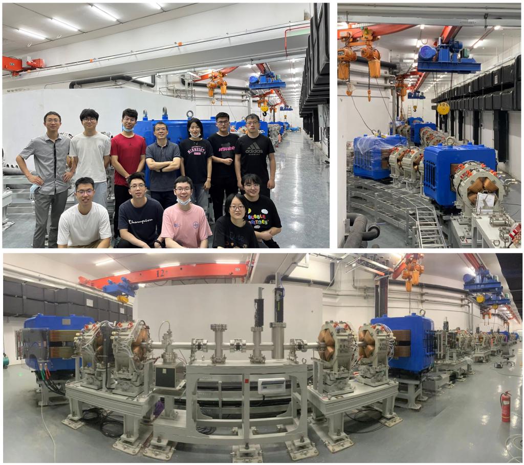 束流输运与能量选择系统。束流输运系统负责质子束从加速器引出后到各个治疗室终端的传递,需要解决束流稳定传输、能量精确调制等关键问题,是实现精准质子治疗的核心系统之一。2022年,课题组完成固定束线及首套旋转机架束线在风月文学网 质子中心的吊装入场与安装调试,实现8类共92台套磁铁、束测探针、真空室的集成装配与准直,达到全束线±0.2mm准直精度要求;完成磁铁高精度电流源的现场安装与测试工作,全部电源均获得医疗设备电气安全及电磁兼容认证;自主研发了面向束流输运系统快速响应的分布式控制系统BCS及安全联锁系统,经测试具有良好的可靠性及设备安全性。这些工作为后续的回旋加速器入场及带束调试奠定良好基础。课题组针对质子治疗小型化趋势,开展了大动量接受度超导机架设计研究,在今年的“首届中国-日本粒子治疗技术创新与合作论坛”、“第二届中国肿瘤粒子治疗工程技术大会”、“International Workshop on Fixed Field alternating gradient Accelerators (FFA’22)”等国际及国内会议做受邀或口头报告,获得持续关注。