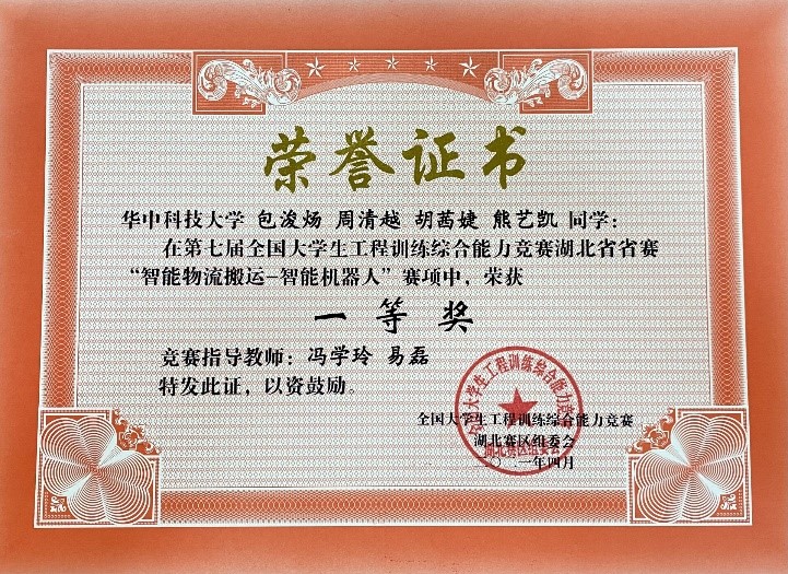 实验中心冯学玲、易磊老师指导的包浚炀团队的智能物流搬运-智能机器人赛项,以省赛第一名的成绩斩获一等奖,并直接晋级全国赛。国赛将于9月在清华大学举行。