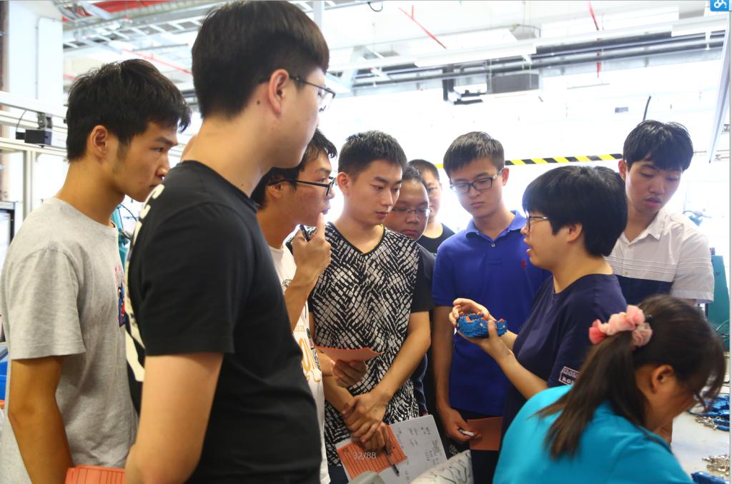 从8月12日开始,主要进行课程前期实习。课程前期分有产品生命周期管理、质量管理、精益管理的理论学习,结合以现场流水线的实际参观,每堂课上须整理汇报。同学们分成小组交流讨论,各抒己见。“工业生产中每一个环节都有严格的标准,质量管理涉及产品生产的每一个环节。”一位同学感慨道,“严谨细致、重视品质的德国工匠精神令我印象非常深刻。”另一位同学对于精益管理惊叹:“工业生产中浪费的种类是如此之多……任何一点小小的改进都会带来极大的效益!”