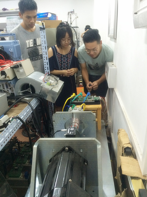 8月23日,激动人心的台架实验日。同学们一大早就排队等待在实验室外,满怀期待。首次尝试焊接复杂的电路,并亲自调试上台架实验,对同学们来是巨大的挑战。台架实验是对同学们前几日辛苦的硬件焊接和调试的一个最有力的证明和回馈。在电机启动的前一刻大家心情紧张无比,随着电机的高速稳定运 行大家开始激动和兴奋起来。