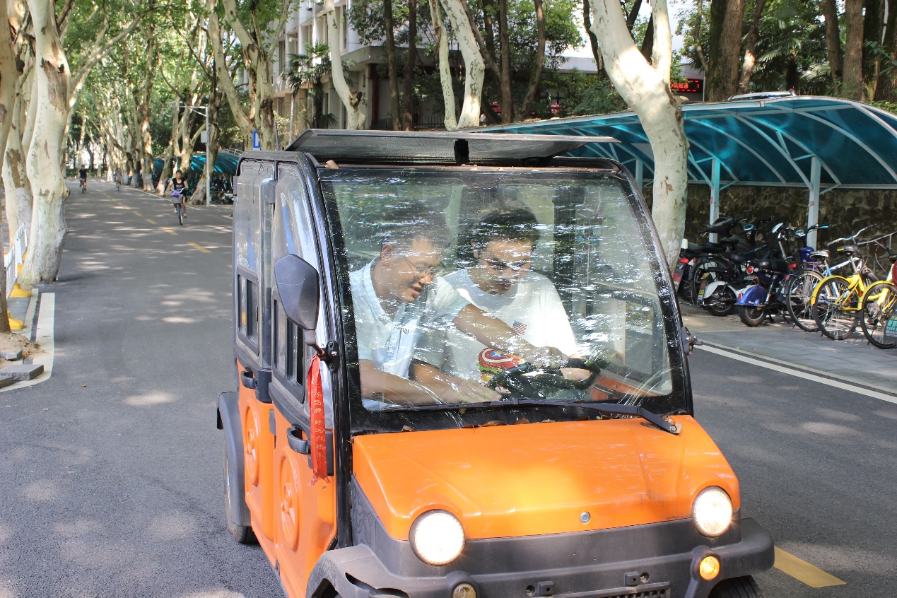 同学们试驾低速电动车