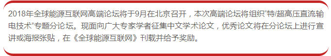 (2)提交邮件请务必使用“2018年全球能源互联网高端论坛+论文题目”的格式,并注明通信作者、单位、联系电话、邮箱等信息。投稿邮箱:[email protected]