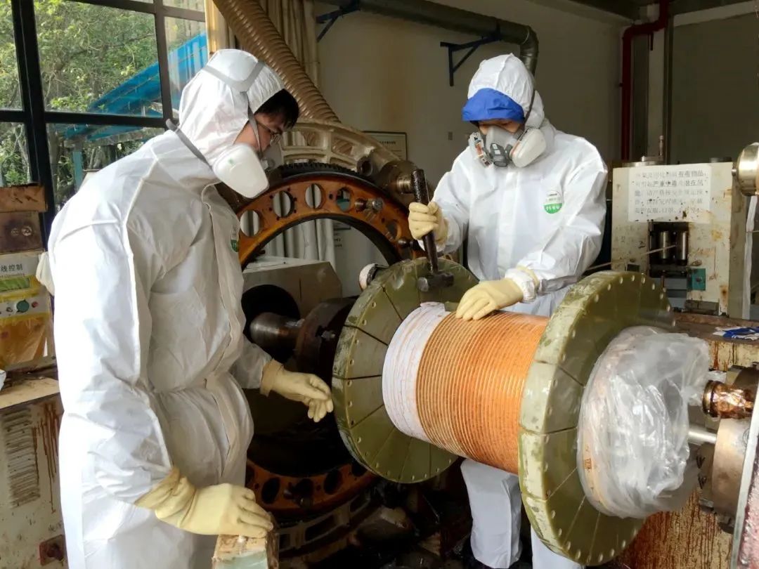 图为党员、磁体团队负责人彭涛教授绕制磁体