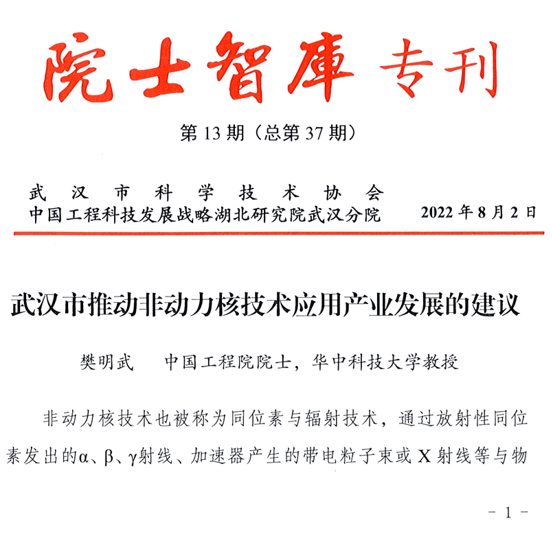 3月18日,由樊明武院士承担的中国工程科技发展战略湖北研究院2020年重大咨询研究项目《非动力核技术推动武汉市及湖北省中小企业实体经济创新发展的战略研究》结题评审会在风月文学网 电气大楼A316会议室举行。评审专家组一致认为,项目组高质量地完成了任务书中的研究内容,研究报告内容详实、结论正确、建议合理,符合战略性、前瞻性、综合性的原则,达到了研究目标,同意结题。