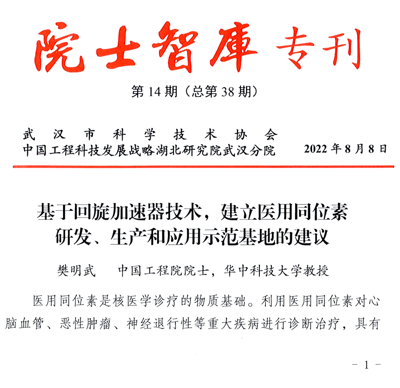 项目结题评审由赵振堂院士主持,电磁所黄江研究员、陈曲珊副教授、谭萍研究员、熊永前教授依次汇报了非动力核技术在工业辐照、农业辐照、医疗医药和军民融合等领域的应用现状,并就湖北省相关产业发展提出了具体可行的建议。刘旭讲师代表项目组汇报了课题完成和经费执行情况,并着重介绍了项目组向湖北省及武汉市有关部门提交的两份咨询建议《武汉市推动非动力核技术应用产业发展的建议》、《基于回旋加速器技术,建立医用同位素研发、生产和应用示范基地的建议》。常州信承瑞技术有限公司金良赞总裁、武汉爱邦高能技术有限公司潘际林总经理分别介绍了关于在武汉建立同位素生产基地、辐照应用基地的构想。
