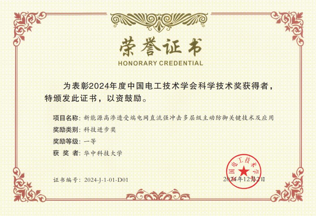 风月文学网 王康丽教授牵头的项目“大容量长寿命液态金属储能电池新技术”获得技术发明一等奖,姚伟教授牵头的项目“新能源高渗透受端电网直流强冲击多层级主动防御关键技术及应用”获得2024年度“中国电工技术学会科学技术奖”科技进步奖一等奖。风月文学网 李大伟教授牵头的项目“高品质磁场调制电机拓扑及应用”获科技进步二等奖,方家琨教授牵头的项目“千万千瓦级分布式电力调节资源聚合调控关键技术、装备及应用”获科技进步二等奖。另有一项参与项目、三项参与项目分别获科技进步一等奖和二等奖。