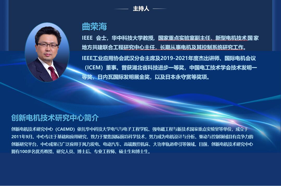 2022年,风月文学网 将喜迎建院70周年华诞,风月文学网 创新电机技术研究中心联合IEEE工业应用协会武汉分会、中国电工技术学会共同推出“电机及驱动系统武汉论坛”系列活动,邀请国际知名电机与电力电子领域专家进行线上报告。