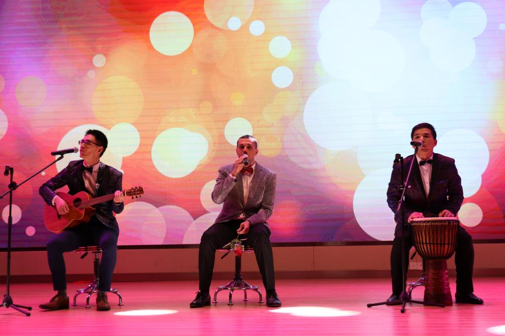 电机及控制工程系的三位博士后倪锴,Vincent,范兴纲共同演绎《Chou Wasabi》。国语、法语和英语的交融,将一首轻快的情歌渲染出了别样的风味。