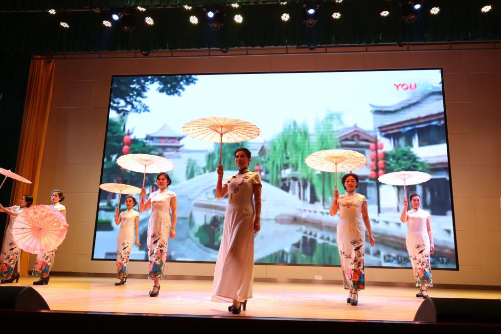 学院女教工模特队表演旗袍秀《江南情》,充分展现了女子绰约的风姿。