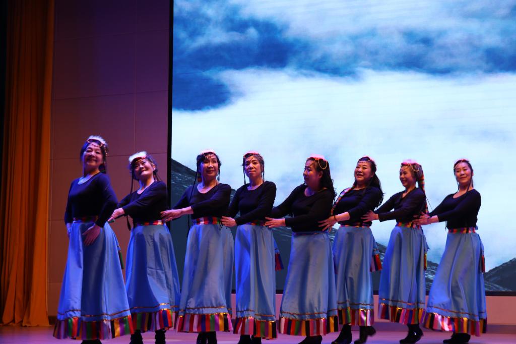 学院老年协会的退休教师演绎舞蹈《远飞的大雁》,抒写了边防战士对家的思念。孙亲锡、周丽华老师献上男女合唱《和风吹来蓝蓝的天》,极具穿透力的嗓音配合美轮美奂的舞台背景,奉献给观众一场视听盛宴。