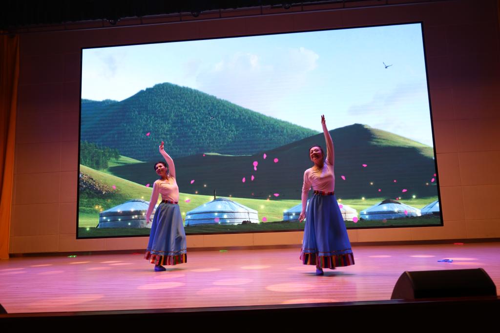 应用电子工程系教师林桦、杨丽莎带来的双人舞《遥远的妈妈》,用蒙古舞带我们走进她们创造的美丽新世界。