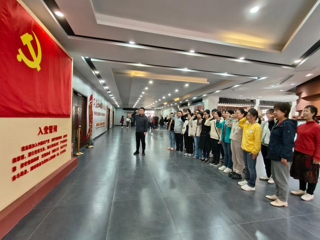 “我志愿加入中国共产党,……,为共产主义奋斗终身,随时准备为党和人民牺牲一切,永不叛党。”参观最后,在新四军第五师历史陈列馆前,面对鲜红党旗,参加活动的全体党员集体重温入党誓词,再次感悟初心使命,接受精神洗礼。