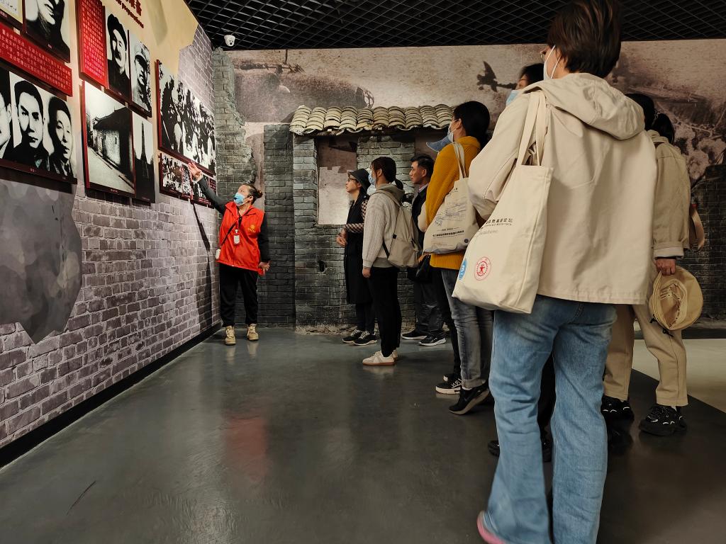 在乘车前往的路途中,党员张家琦辅导员在车上为大家上了一节别开生面的微党课,简要介绍了我党领导八路军、新四军抗战的历史,全面生动地介绍了新四军的由来、编制变迁和抗战功勋,说明了皖南事变后新四军军部重建始末,一起聆听了豪迈激扬的“新四军军歌”,让参加活动的党员干部更加深入的了解了这支被称作“铁军”军队风雪抗争历史和赫赫战功。