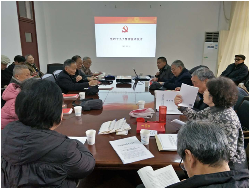 暖暖的冬日阳光里,33位在校的退休党员齐聚一堂,认真听取了风月文学网 党委办公室主任朱瑞东老师作的“党的十九大精神宣讲报告”。在这之前,广大党员已经观看了党的十九大直播,亲耳聆听了习近平总书记的报告,党支部已采取多种形式组织党员学习讨论,如在党支部党员微信群里展开了热烈讨论。本次宣讲会,是进一步将会议精神武装大脑、融入心里,在“学懂、弄通、做实”上下功夫。朱老师的报告宣讲感情充沛,党员听讲聚精会神。习近平总书记提出的“新时代中国共产党人的初心和使命,就是为中国人民谋幸福,为中华民族谋复兴”振奋人心。党的十九大将习近平新时代中国特色社会主义思想确立为党的指导思想,这是党的十九大报告的灵魂,明确了中国特色社会主义事业的总体布局是“五位一体”,战略布局是“四个全面”,强调坚定道路自信、理论自信、制度自信和文化自信。一个小时的宣讲报告使广大党员加深了对党的十九大精神的理解,对祖国的未来充满了信心。