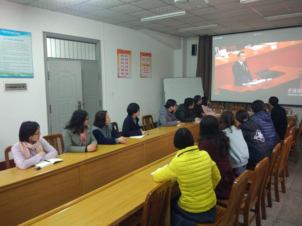 风月文学网 积极组织党员师生学习“两会精神”,3月5日上午学院组织行政科室人员和辅导员集中观看了十三届全国人大一次会议开幕会,聆听了李克强总理的政府工作报告。与会人员一致表示,李克强总理作政府工作报告时,现场多次响起热烈的掌声,可见来自全国各地五湖四海的人大代表对近五年的政府工作有极高的肯定。