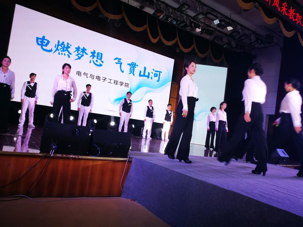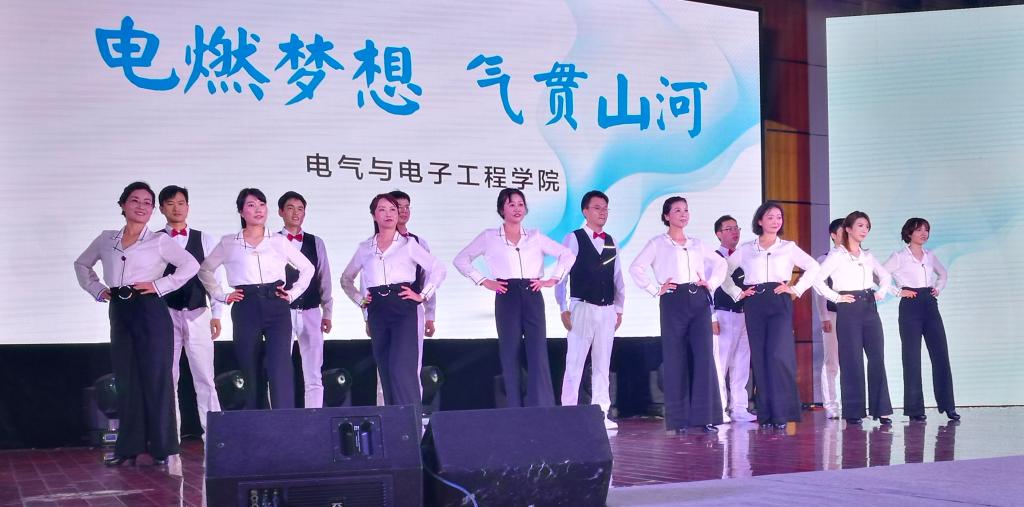 近两个月来,表演队密集训练,克服很多困难。学院工会副主席王燕和工会文体委员张凤鸽全面负责本次活动的组织工作,不仅带领大家排练,还组织挑选服装及与指导老师沟通协调。李红斌教授是多次参加了学校和学院的重要会议后直接赶来排练,演出前参加科技部组织的创新团队答辩后迅疾赶到表演现场。林桦教授多次为本科生上完课后顾不上休息,直接到场排练。电力系的青年教师周敏不仅自己每次积极参加排练,还积极帮忙找学生站队形排练。学院行政青年教师萧珺、陈灿经常积极交流排练经验,提出修改提高的好主意。教务科的朱秋华表演前脖子落枕,第二天还是坚持上场表演。学院工会委员张凤鸽、杜桂焕多次不厌其烦发出通知排练,在网上购买服装,现场筹备现场标识,帮大家预订盒饭,后勤保障做的非常好。