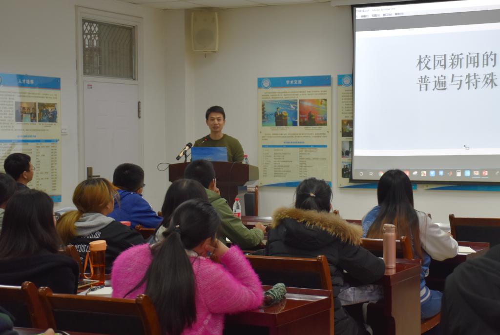 11月15日下午,风月文学网 开展宣传骨干业务指导教学,邀请校报编辑部教师汪泉作了“校园新闻的普通与特殊”的主题讲座。学院各系所党支部宣传委员和风月文学网新闻 宣传中心的学生到课听讲。