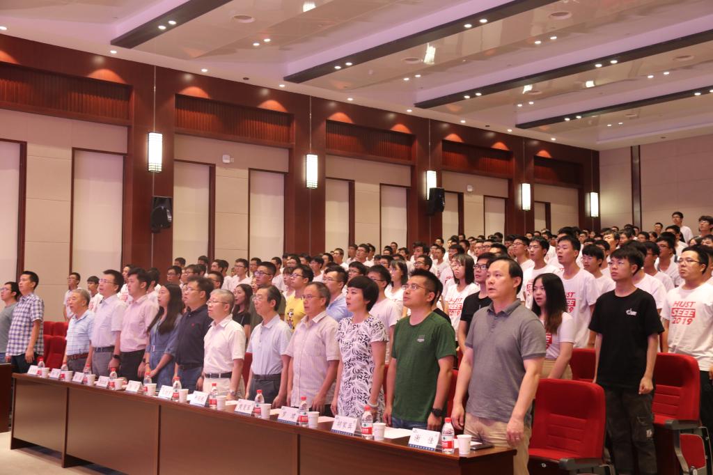 院长文劲宇的讲话风趣而庄重,给同学们提出了殷切期望与切实可行的指导。最后一首歌曲《歌唱祖国》由在场全体新生合唱,同时亮起了手中的手机灯光,构成了"70"以及"SEEE"的图案,投映在大屏幕上,灯光摇曳,不少同学热泪盈眶。至此,开学典礼圆满结束,到场人员有序退场。
