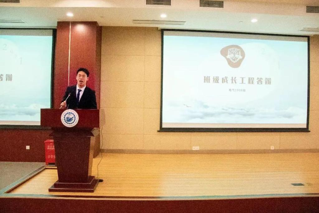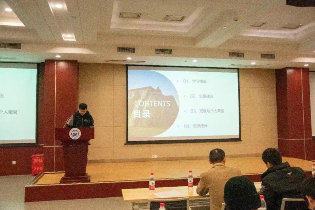 会议伊始,主持人详细介绍了班级成长工程答辩会的流程以及比分机制。随后,13位班级负责人依次从班级的日常管理、学风建设、文化监视、氛围建设以及未来规划等五个方面向评委们展示所在的班级的风采。