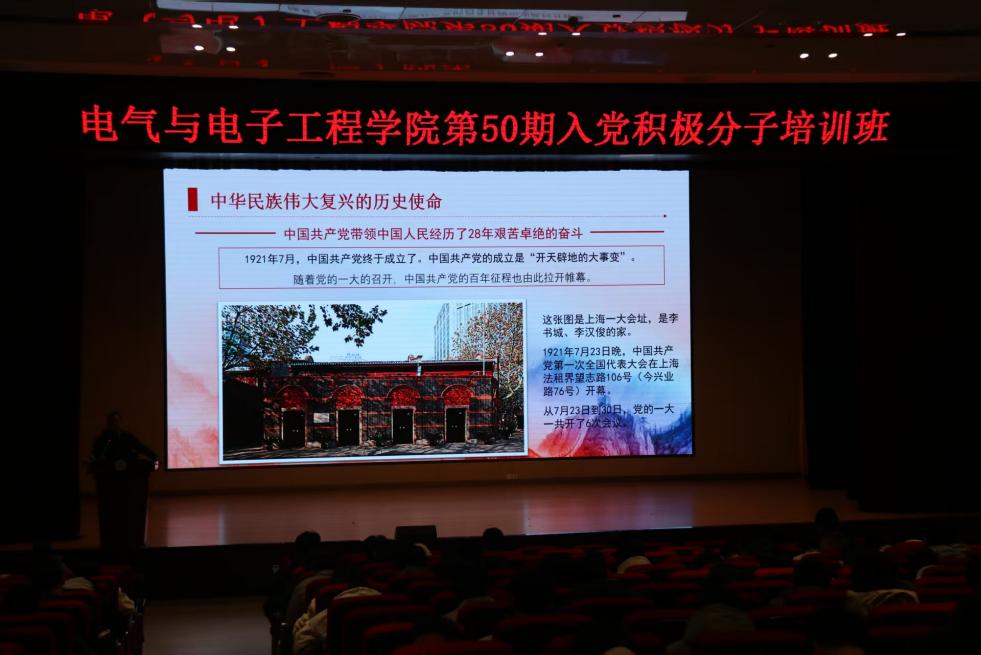 开班仪式后,系统的理论授课环节有序展开。本次系列课程围绕青年成长与理想信念教育,分三个专题系统展开,引导学员深化思想认识,坚定政治方向。第一讲,校党委办公室、校长办公室职员陈璞赟老师以“青春孕育无限希望,青年创造美好明天”为切入点,结合习近平总书记关于青年工作的重要论述,深入阐述了新时代青年树立正确人生价值观、筑牢政治信仰的重要性。第二讲,人工智能与自动化学院党委副书记曹攀辉老师从“中华民族伟大复兴的历史使命”“党的百年光辉历程”“党的发展经验与启示三个维度”,回顾了中国共产党自诞生以来的奋斗之路。第三讲,光电信息学院、研究中心党委副书记李文龙老师聚焦入党实务,阐明了端正入党动机的思想内涵与实践要求。同时,他系统介绍了入党所需具备的条件、具体流程与规范,为学员们提供了清晰、规范的入党指引,助力大家从思想到行动积极向党组织靠拢。