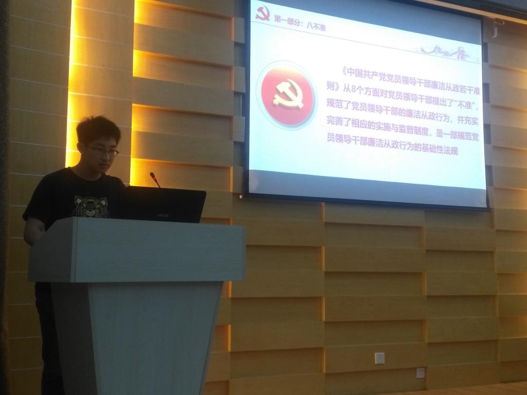 首先由薛凤鸣同志带领全体党员学习《中国共产党纪律处分条例》等文件,并介绍党支部“对标争先”活动的相关情况。同志们分别学习了《中国共产党党员领导干部廉洁从政若干准则》从8个方面对党员领导干部提出的"不准"以及教育部印发的关于《关于建立健全高校师德建设长效机制的意见》中的内容。随后薛凤鸣介绍了中共教育部党组颁发的《关于高校党组织“对标争先”建设计划的实施意见》,要求在“对标争先”中要做到“七个有力”,明确了教育党员、管理党员、监督党员、组织师生、宣传师生、凝聚师生、服务师生等七个方面的具体要求。