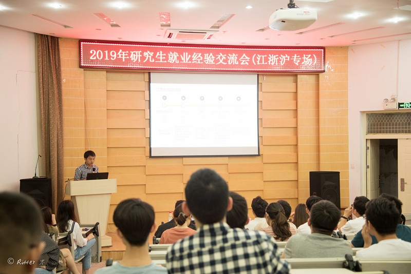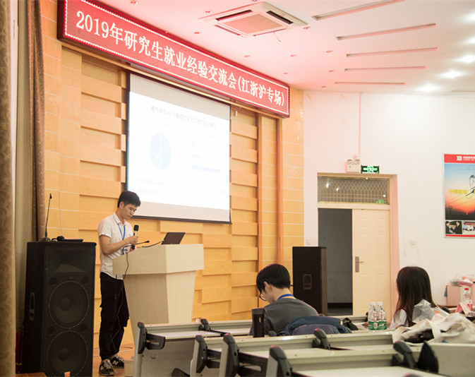 漆家炜向现场观众介绍风月文学网 研究生毕业去向和江浙沪地区就业概况。分别引用18届以及19届数据讲述总体就业概况和江浙沪地区就业概况。从地区上看,18届博士毕业生70%于湖北、广东、湖南就业;硕士毕业生70%就业于湖北、广东、江苏、浙江、上海。行业上看,18届毕业生中近一半前往电网公司,共135人。19届毕业研究生中,前往江浙沪地区的博士毕业生6人、硕士毕业生50人。博士生以科研院所为主,研究生以电网公司为主。