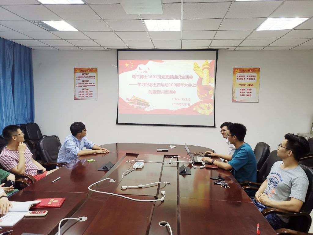 6月3日晚,电气博士1601班党支部在西九楼318会议室召开预备党员转正大会暨六月份组织生活会,深入学习贯彻习近平总书记在纪念五四运动100周年大会上的重要讲话精神。支部全体党员参加了会议,会议由支部书记朱乔木主持。