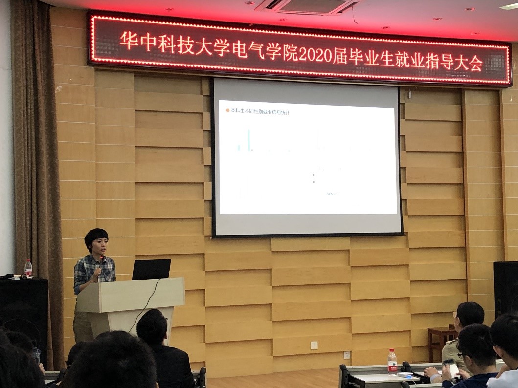 罗珺对2019届毕业生就业基本情况进行了介绍,让学生们对近四年来毕业生的就业趋势有了详细的了解。随后,罗珺从毕业生就业意向、招聘信息变化和学生应聘过程中出现的问题等多个方面对2020届毕业生招聘季形势与特点进行了详细的分析,从不同角度对2020届相关就业政策进行解读并给出相关建议。她强调,同学们要结合电气专业优势,强化自我认知,明确自身定位,树立正确的择业观和就业观,合理选择毕业去向。特别重点的,罗珺书记对选调生的政策进行了详细的解读,阐述了选调生工作的重要性。报告以详实的数据和实际案例帮助2020届毕业生及早了解就业形势,为同学们开展就业选择做好积极准备。