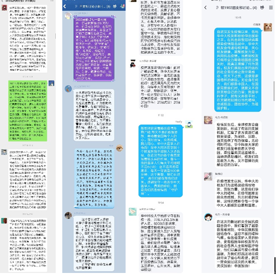 “华中大校友精神”学习心得:本次讨论中,团员们先是讨论了华中大校友在疫情期间所展现的强烈的社会责任感,然后体会了其中所展现的华中大校友精神,即在任何困难面前众志成城,共克时艰的精神,这样的精神令每一个华中大人都感到自豪和温暖,最后联系自身,表达了自己作为华科学子,更要在这个特殊时期,像这些优秀的校友致敬学习,在平时、在关键时刻践行当代华科精神,忠诚担当、团结协作,为祖国护航。