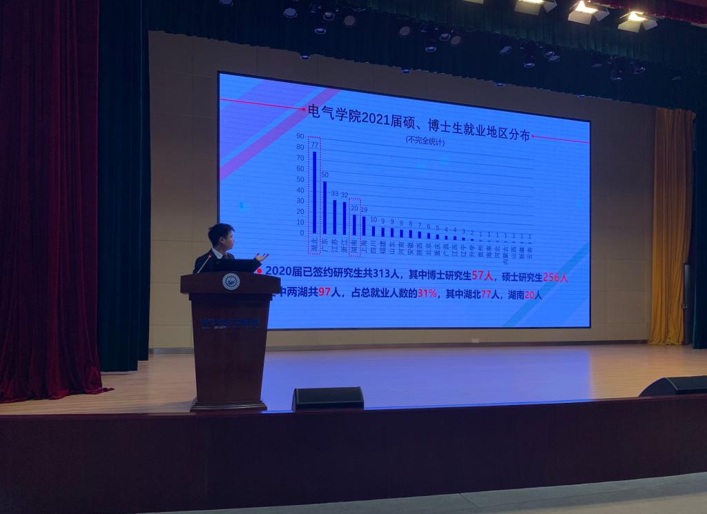 2021年5月13日晚,2021年就业经验交流会两湖专场在电气大楼B205多功能厅举行。就业服务中心的蔡翔主持本次交流会并分析了2021届应届毕业生在两湖地区的就业情况,5位优秀的学长学姐罗晓通、闵怀东、贺思婧、阮景煇、孙宏博分别结合自身经历向到场同学分享了自己的就业流程及求职经验。