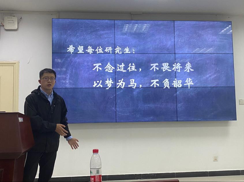 刘旭为大家分享自己对于读研一些经验和体会。他首先为新生介绍了电磁所创建与发展的历史,是一个由多学科老师与学生构成的新兴系所。随后,提到读研期间首先要保持心态的健康,用富足的精神世界来对抗读研道路上的挫折与孤独。其次,关于学术方面也给出了自己的一些建议,他希望研究生能够在开始就能尽早制定目标、周密计划,在研究生阶段养成独立思考的能力,重视导师给出的建议而不过分依赖导师,锻炼属于自己的创新能力与学术观点。最后刘老师祝愿每一位2022级研究生新生都能够:“不念过往,不畏将来,以梦为马,不负韶华。”度过一段充实而有意义的研究生生涯。