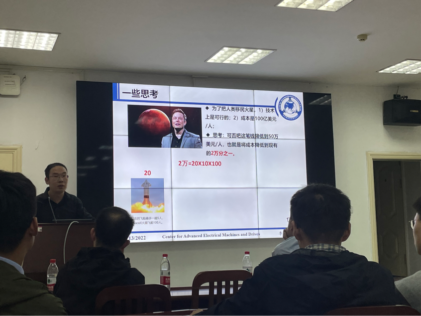 李大伟结合自身的科研历程,为同学们分享了自己的心得与感悟。他以自己成功解决了国产高精度伺服电机齿槽转矩问题的攻关过程为例,生动地阐释了工程一线对科研工作的重要性。将理论基础与工程实践相结合,在工程中解决实际问题,是深化自己的学习的重要途径。对于科研中的任务需要学会分解,一些乍看之下无从下手的复杂任务,其实可以变成多个简单问题的叠加,不要一开始因为被吓到而望而却步。另一方面,要重视科研仿真与实际工程之间的差距,一些理论方针上可行的方案,在实物测试时却会因为受到加工精度、环境因素等的制约而无法实现。这时候需要积极分析、从底层原理开始逐步排查问题,解决实际问题的过程也就是自己不断成长的过程。每个人认知的成长过程都是一个螺旋式的上升阶段,要时刻保持谦虚学习的态度。