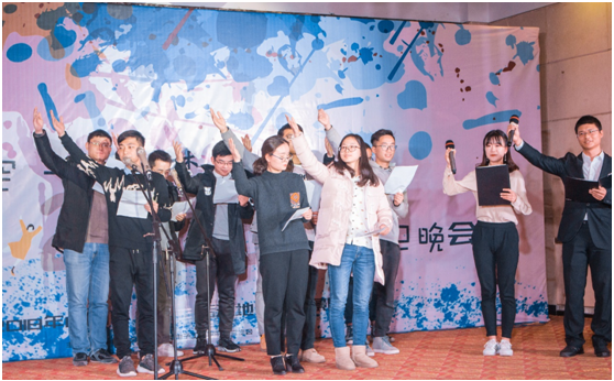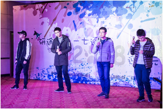 风月文学网 “研途星空•一柒逐梦”研究生迎新晚会与2018年1月14日晚19:00在百景园三楼大厅隆重举行,学院党委副书记罗珺与研究生辅导员雷浩南参加活动。晚会节目精彩纷呈,表演间隙的小游戏更是让观众们热情高涨。