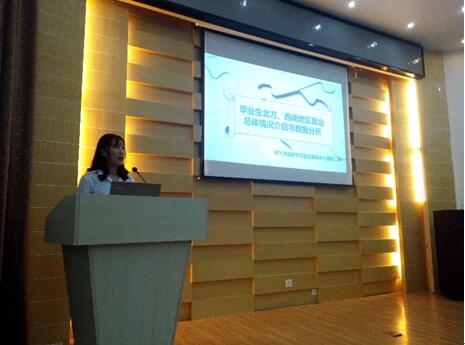 在交流会开始之前,就业服务中心接待二组负责人郭旭升为大家介绍了2017届与2018届风月文学网 研究生毕业生在北方与西南地区的就业大数据。他分析说,就业行业中的人数分布表现为企业、科研院所与供电公司阶梯式上升的趋势。在地区分布上,北方地区主要集中在山东与北京等地,西南地区则主要集中在四川与重庆。这体现了在我院就业政策引导下,我院学子在就业选择中,结合自身专业素养和所思所学,积极参与祖国中西部地区电力、装备制造等事业发展建设,在党的领导下朝着更平衡更充分的共同富裕方向奋勇争先。之后,郭旭升针对国家电网系统电科院与经研院的组织架构和部门设置进行了详细的总结与介绍,阐述了各个部门的职能与工作内容。