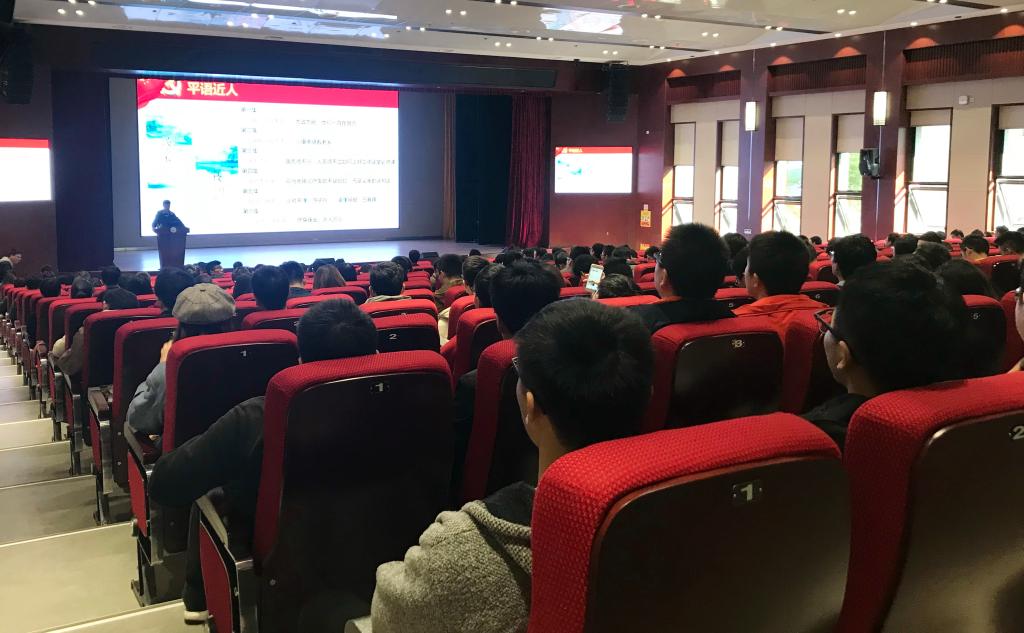 林磊以习近平“语”近人系列讲话为切入点,结合引用古代典籍和经典名句,与同学们一起回顾和学习了十二节专题片,展现了最接地气、最得民心、最具能量的习近平总书记形象。然后,林磊分别从“做平语的行者、政治常识一起学、大学生注意事项提醒”等三个方面,生动阐释,深入浅出,教育同学们奋发向上、刻苦学习,学习贯彻习近平新时代中国特色社会主义思想,努力为实现中国梦和建设一流学科做出贡献。