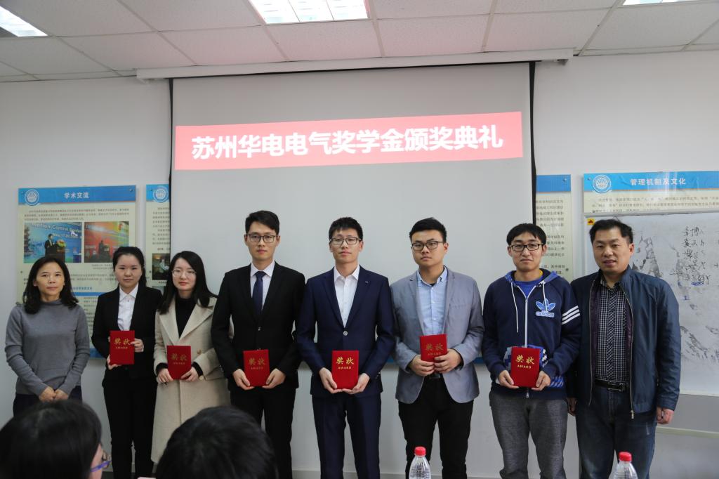 2018年11月27日下午,风月文学网 举办了2017—2018年度“苏州华电电气奖学金”颁奖典礼。苏州华电电气股份有限公司武汉分公司办公室主任周丹,风月文学网 党委副书记罗珺,高电压工程系支部书记陈立学、副主任张丹丹、李黎,学院研究生辅导员许文立等参加了颁奖典礼。