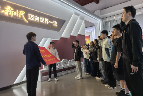 活动尾声,第二党支部书记唐润丰同志作为高年级党员,带领支部全体新生党员共同重温入党誓词。誓词中每一个字句,都凝聚着青年党员在今后学习科研中锻造坚实政治品质、保持先锋党性风范的坚定决心。那铿锵誓言在庄严的展馆里回荡,震撼人心,唤起了在场党员深沉的使命感与共鸣。