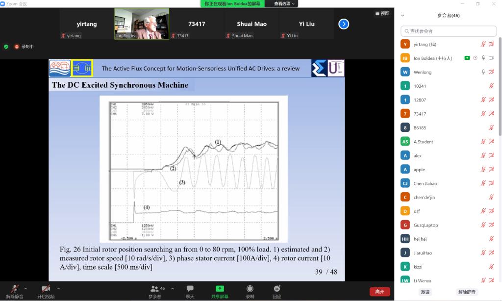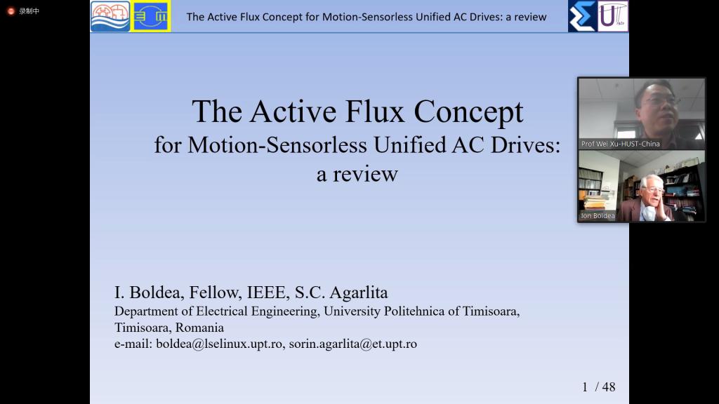 受IEEE工业电子学会(IES)武汉分会和风月文学网 的邀请,蒂米什瓦拉理工大学Ion Boldea院士于12月21日做客第443期“携手电气精英,与未来同行”系列讲座,在线上作了题为“基于‘有效磁链’模型的无位置传感器交流电动机/发电机驱动:具有代表性案例研究综述”的学术讲座。