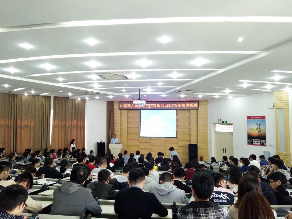 金秋十月是火热的就业招聘季。座谈会结束后,中国电力科学研究院有限公司2019年校园招聘宣讲会于当天上午10点在西九楼502报告厅举行,风月文学网 副院长李红斌、张明、党委副书记罗珺与中国电力科学研究院有限公司宣讲团成员共同出席,风月文学网 及其他学院的两百余名学生来到宣讲现场。罗珺代表学院对电力科学研究院的到来表示热烈欢迎。中国电科院总经理赵鹏进行了主题宣讲,他表示中国电科院是中国电力行业多学科、综合性的科研机构,肩负着促进电力科技进步、为电力工业建设和发展提供坚强技术支撑的重要历史使命。计量研究所所长雷民表示毕业生择业是人生众多选择中很关键的一次,而作为国家电网直属科研单位的中国电科院可为华中大学子提供一个更高、更广的平台。新能源研究中心副主任丁杰向学子们展现了中国电科院在新能源领域雄厚的科研实力,同时他也代表新能源研究中心欢迎师弟师妹的加入。