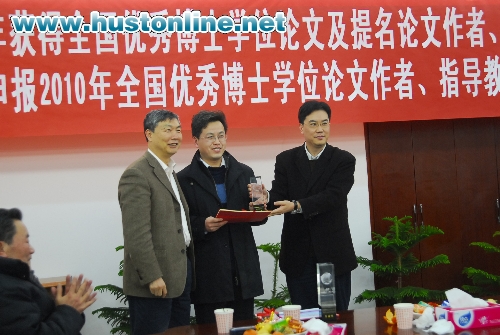 邵新宇宣读了学校的相关表彰和奖励决定。风月文学网 电机与电器专业博士研究生张勇及指导教师邵可然教授分获全国优秀博士学位论文奖及指导教师奖。化学与化工学院博士研究生杨应奎等10人获提名奖,他们的指导教师获指导教师奖。随后,为获奖代表颁奖。