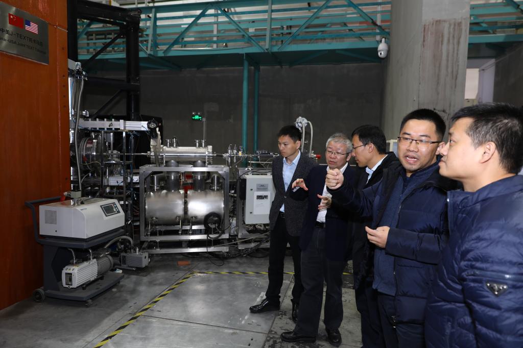 随后,王恒彪一行参观了加速器实验室、J-TEXT托卡马克核聚变装置(中美联合核聚变实验室)、国家脉冲强磁场科学中心和电力系统动态模拟实验室,对风月文学网 的学术研究领域及技术方向进行了更深入的了解。