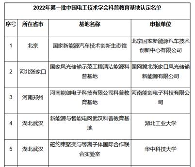 2022年第一批中国电工技术学会科普教育基地名单