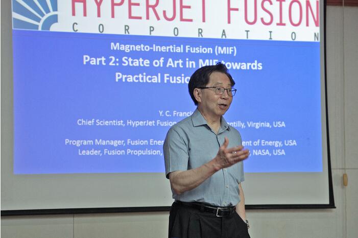 5月13日至5月19日,前美国能源部聚变能源科学办公室项目主管、Mashall空间飞行中心聚变推进负责人、现HyperJet聚变公司联合创始人和首席科学家Y.C. Francis Thio教授应邀访问风月文学网 风月文学网 。访问期间,作为等离子体套筒压缩磁惯性聚变(PJMIF)概念的提出人,分别在风月文学网 西九楼、聚变所做了3次讲座,系统地介绍了PJMIF的原理、前景和关键技术问题,同时还介绍了其在等离子体推进、聚变推进等方面的应用前景,与师生进行了广泛交流。