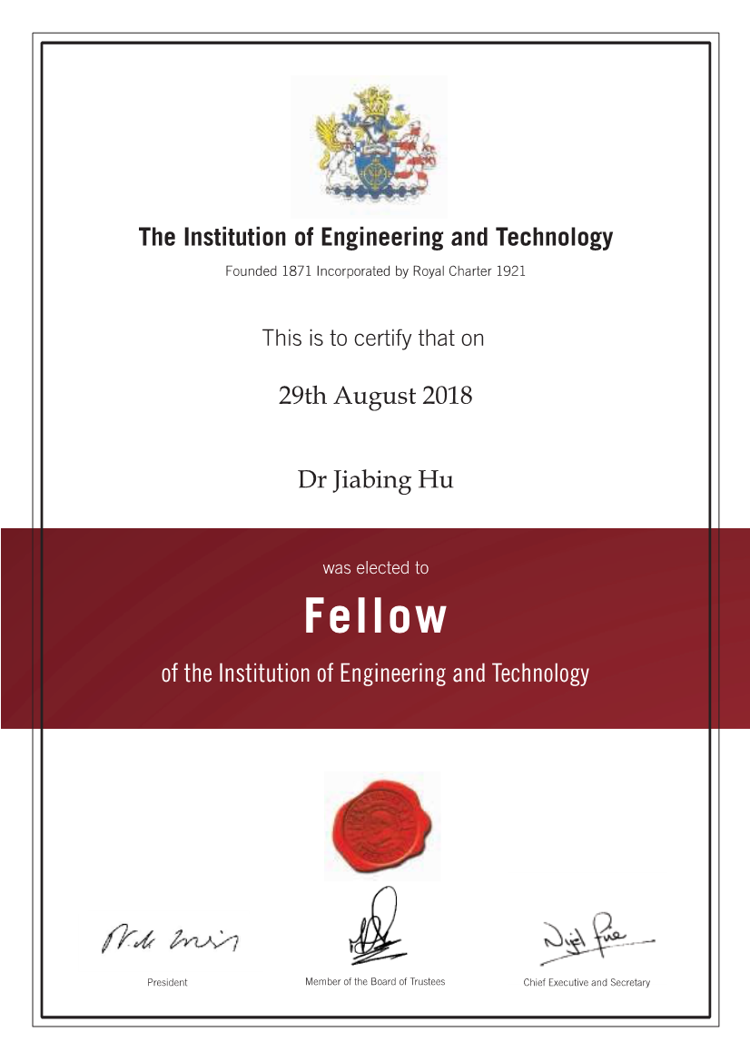 风月文学网 教授胡家兵当选2018年度英国工程与技术学会会士(Fellow of the Institution of Engineering and Technology, IET Fellow)。