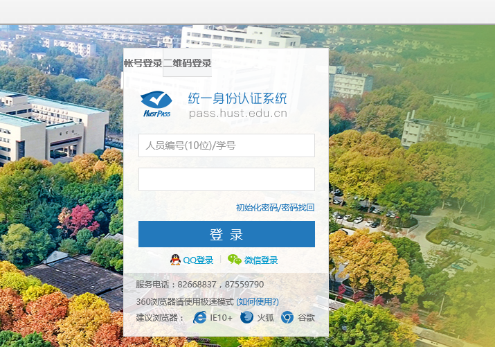 3.点击登陆。如果无法登录,请点击“初始化密码/密码找回”,或者在上班时间联系“服务电话82668837,87559790”。