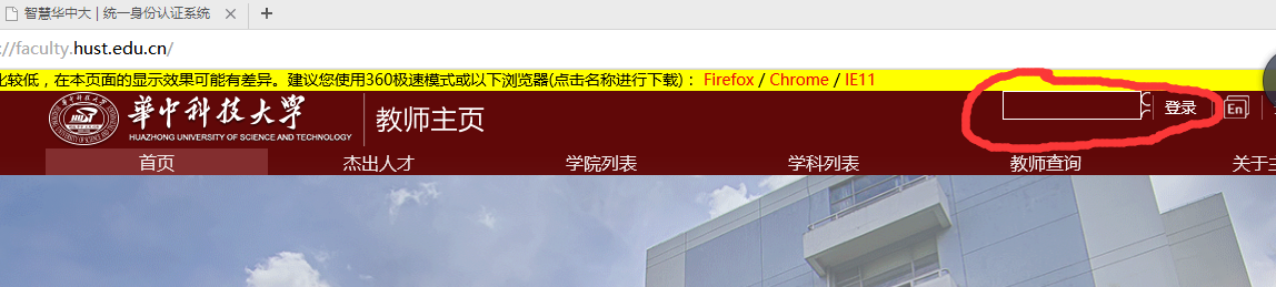2.使用学校统一身份认证账号密码进入个人主页管理平台(说明:个人主页管理平台仅允许在校园网内登录,如需校外登录须首先登录学校VPN)。
