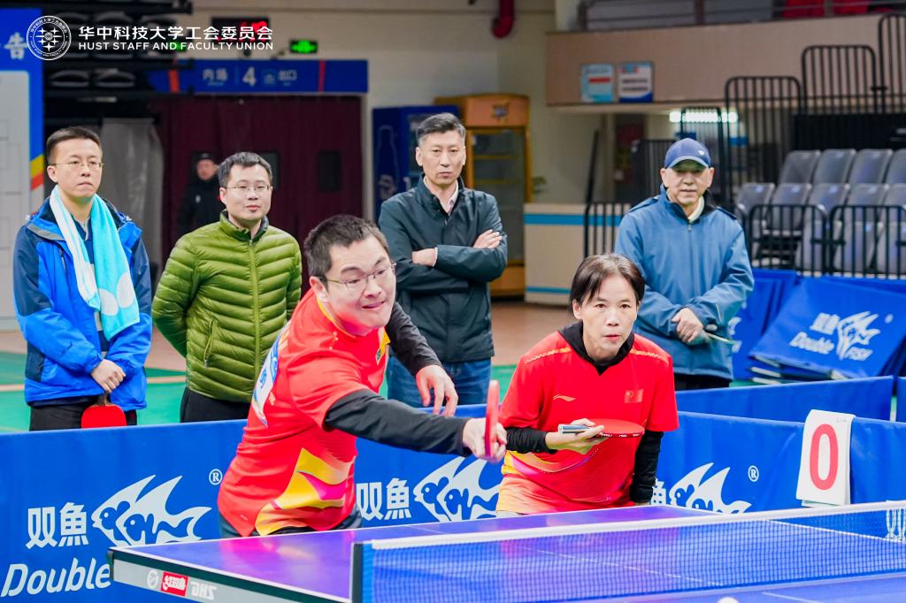 彭小圣对阵出版社的比赛,在大比分领先优势显著的情况下,他紧咬比分没有丝毫放松,最后发扬团结风格,主动给强劲对手让分,展现了高尚的体育道德,赢得了对手的尊重和观众的赞誉。赖智鹏在本届比赛中表现出色,成为当之无愧的“黑马”,他的“电弧圈球”赢得了无数赞扬。陈忠勇和张丹丹的组合,刚柔并济,在比赛中克敌无数,展现出了强大的实力。张红一贯超级稳定的发挥,为团队提供了坚实的后盾。古晓艳对阵基础医学院在第一局失利、第二局7:10落后的情况下,展现出坚韧的意志和强大的抗压能力,逆转局势,为团队赢下宝贵的一分,这是团队精神的生动写照。