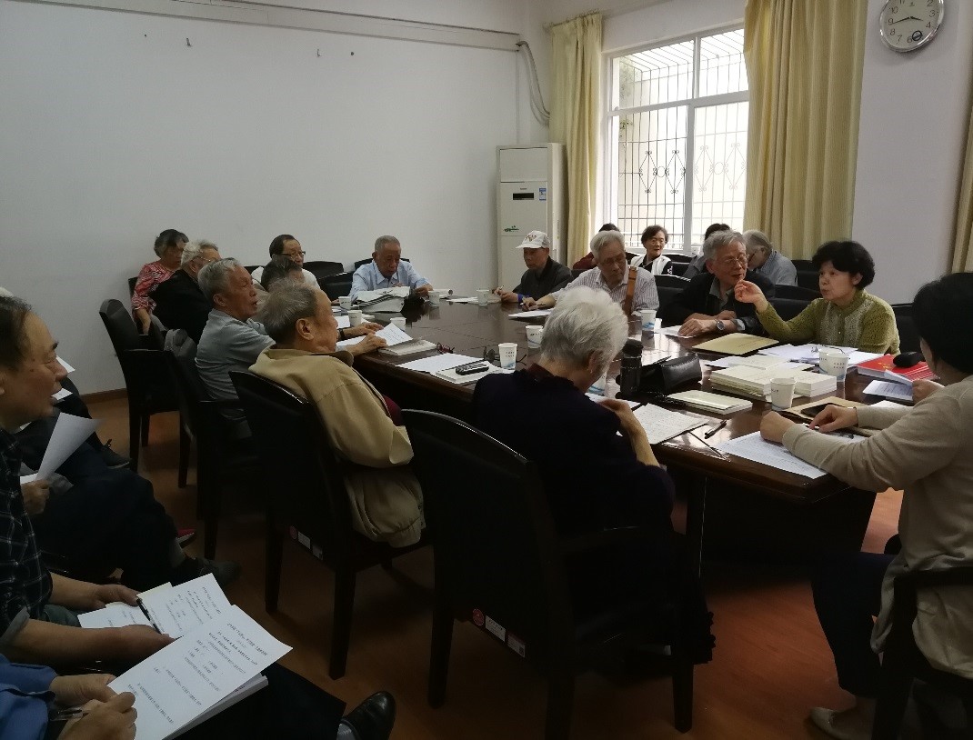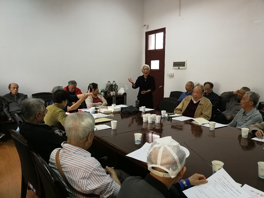 在不忘初心、牢记使命”主题教育中,尹老师就《习近平关于“不忘初心、牢记使命”论述摘编》和《中国共产党党员教育管理工作条例》两本学习材料中重点内容做了讲解。她强调,离退休党员在身体允许的情况下,要抽时间搞好自学;虽然已经退休了,但我们仍然要发挥党员的模范带头作用,要传播正能量,发挥余热,积极参与关工委和党员活动,如前段时间学院组织学生搞的“讲好华中大故事”活动,采访老同志,把他们的事迹写下来,就是很好的例子,学院和老教师都反映良好。