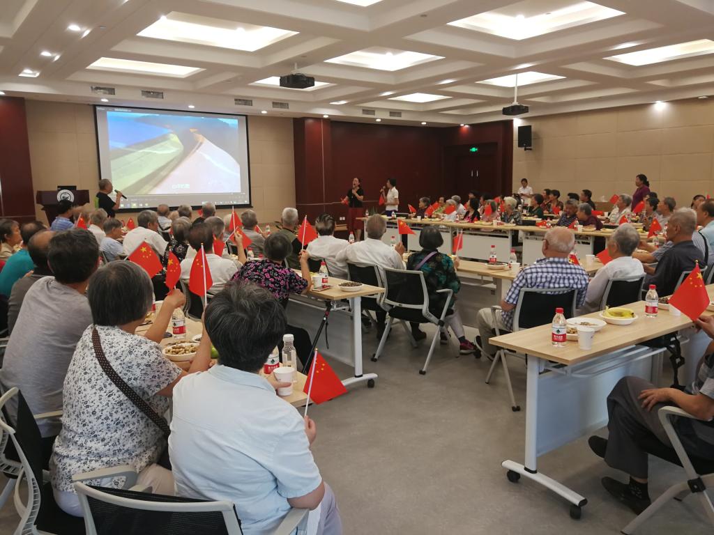 会议在欢乐的轻音乐声中开始。电工系退休教师周丽华一展歌喉,为大家演唱歌曲《我爱你,中国》,孙亲锡以满满的乡思情为大家清唱《九月九的酒》,然后全体退休教师齐唱《我和我的祖国》。会场气氛随着合唱歌曲进入高潮,老同志用饱满的热情、昂扬的状态,挥舞着手中的国旗,唱响对祖国的赤子之情,歌唱伟大的祖国,希望伟大的祖国繁荣昌盛!