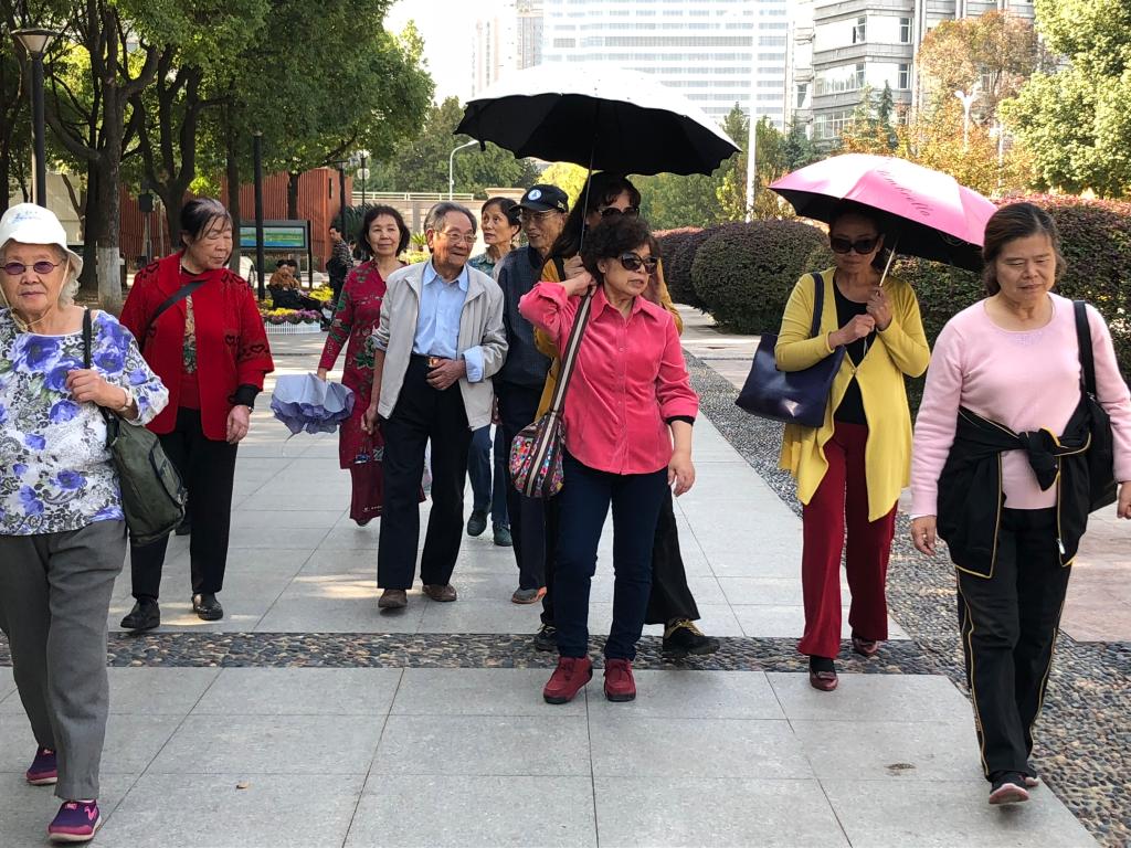 天高云淡,秋风送爽,暖暖的阳光伴我们一路畅行来到解放公园参观武汉市第35届金秋菊展,“喜迎军运,建设美丽武汉” 主题菊花展品种多达60个,其中盘龙卓越、盘龙如意等盘龙系列的菊花都为世界罕见品种。花展灿若云霞,千姿百态,白发一族的我们被这姹紫嫣红,争奇斗艳的菊花陶醉了,尽管不少老师年过80,但个个精神饱满,游性正浓,大家你扶我挽,三五成群结伴而行,相互照应慢步在花的海洋,欢声笑语此起彼伏,我们留下了一张张人与花共舞,花与人同乐的幸福照片。
